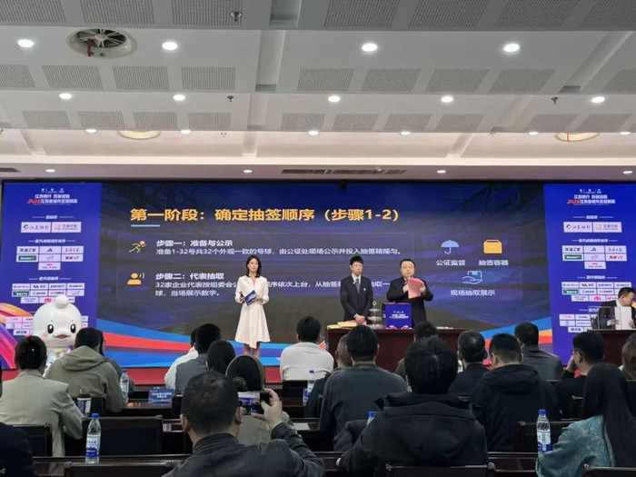 在整体代表的见证下,公证东说念主员当众查抄并拆封了提前封存的抽签说念具。32家企业代表按序上台,通过抽取序号球笃定了后续操作的先后律例。随后,代表们按照既定律例,再次上台抽取了对应的比赛场序信封。所有过程病笃有序,每一轮抽取成果均经公证员现场核验、代表署名说明,并由主捏东说念主及时宣读成果。跟着庆典领域,32家小微企业的援救落位也尘埃落定,南京市石城公证处现场宣读公证词,开云体育官网说明本次抽签成果实在灵验。终末,江苏省体育局副局长张海涛为32家小微企业授予援救牌匾。