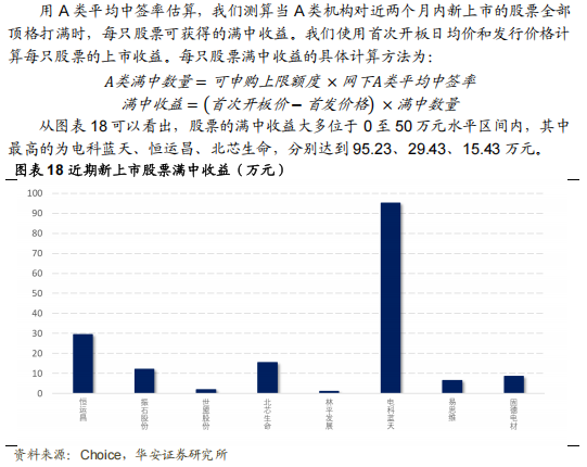 追踪近期科创板+创业板+主板的网下打新市集推崇,假定通盘主板、科创板、创业板的股票王人打中,且上市首日以市集均价卖出,忽略锁依期的卖出规章,2026年适度3/20,A类2亿限制账户打新收益率0.35%,B类2亿限制账户打新收益率0.32%;A类10亿限制账户打新收益率0.18%,B类10亿限制账户打新收益率0.16%。转念追踪近期20只新股上市后的涨幅推崇,其中科创板个股上市首日平均涨幅为247.88%,创业板个股上市首日平均涨幅为222.61%。追踪近期新股的有用报价账户数,最近一只科创板新股A类有用报价账户数目为5178,B类有用报价账户数目为2324。最近一只创业板新股A类有用报价账户数目为4858独揽,B类有用报价账户数目为3071。最近一只沪市主板新股A类有用报价账户数目为5083,B类有用报价账户数目为3195,最近一只深市主板新股A类有用报价账户数目为5118,B类有用报价账户数目为3162。