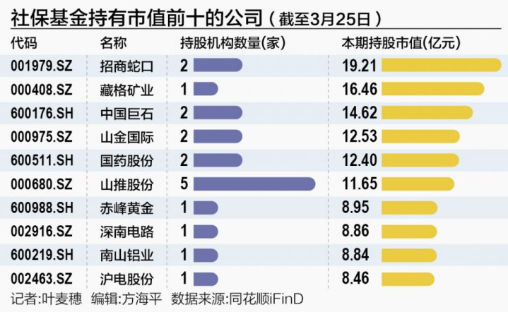 凭据捏股量统计,招商蛇口、南山铝业、海油发展、南钢股份的社保基金捏股量均提高1亿股,永别为2.22亿股、1.64亿股、1.22亿股和1.08亿股;2025年四季度末捏股市值超10亿元的个股有6只,包括招商蛇口、藏格矿业、中国巨石等。