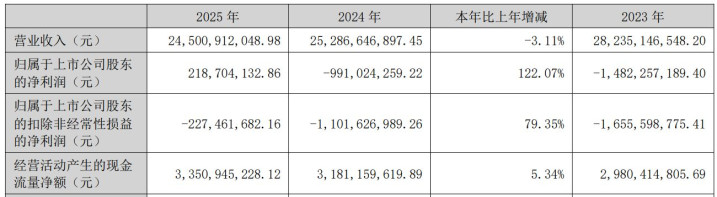 具体来看,2025年,金隅冀东已毕营收约245.01亿元,同比减少3.11%;归母净利润约2.19亿元,扭亏为盈;扣除非日常性损益后,公司归母净利润仍失掉,但失掉幅度同比减少。