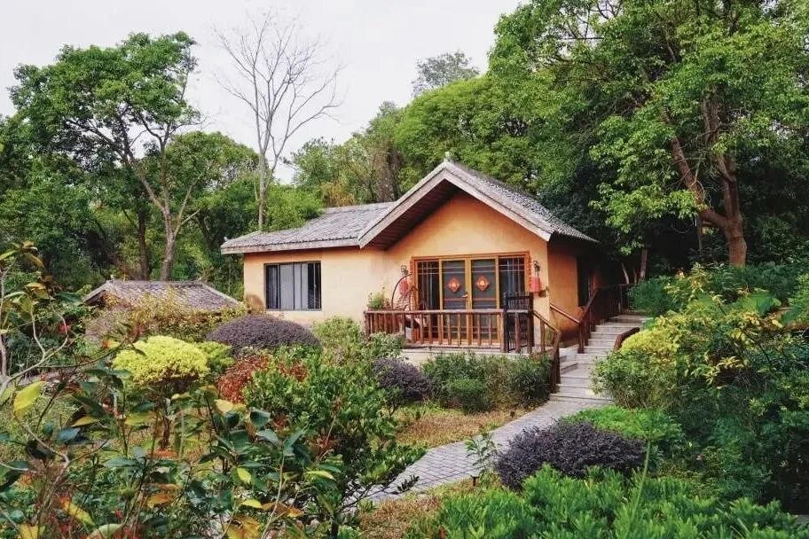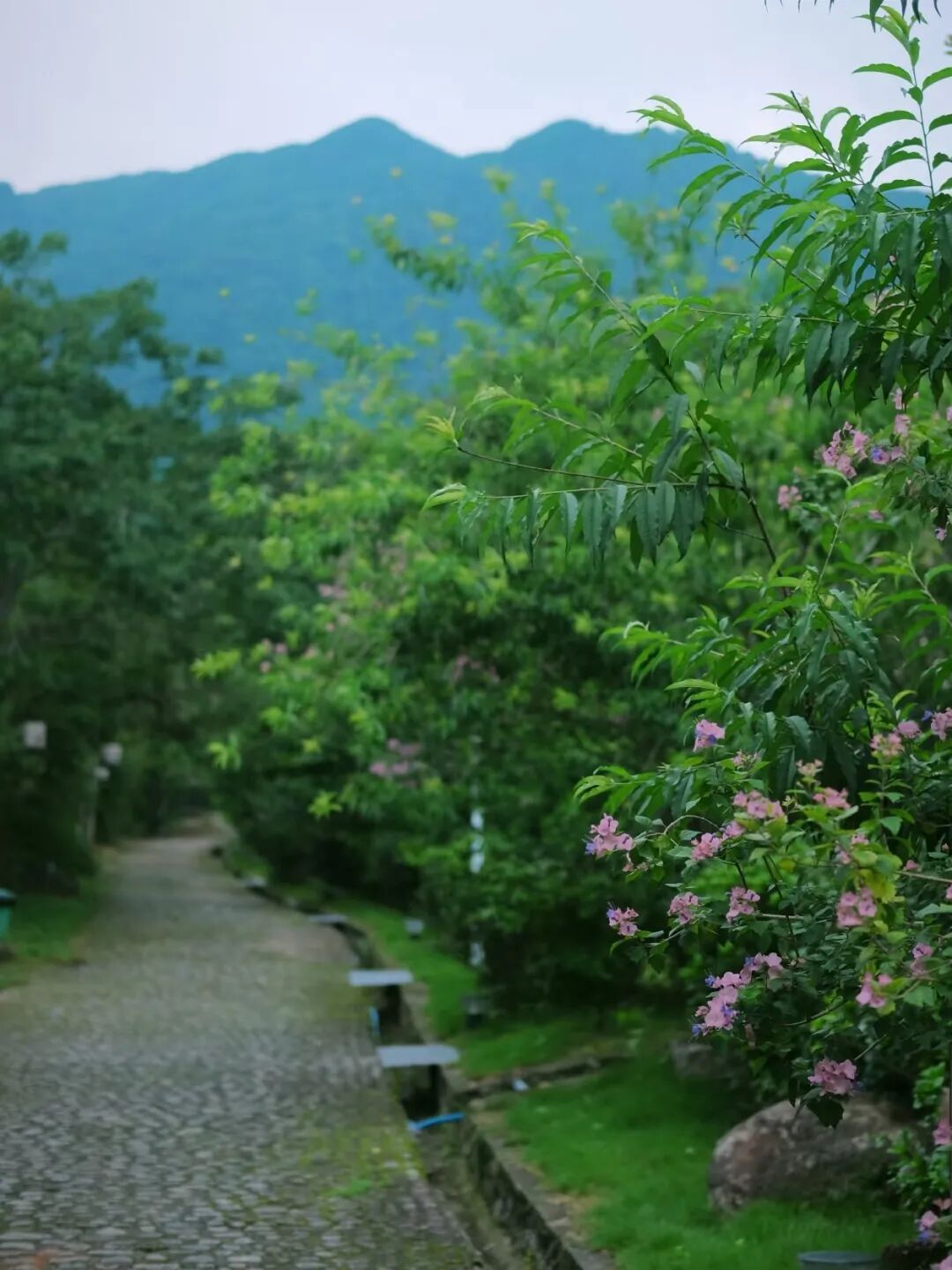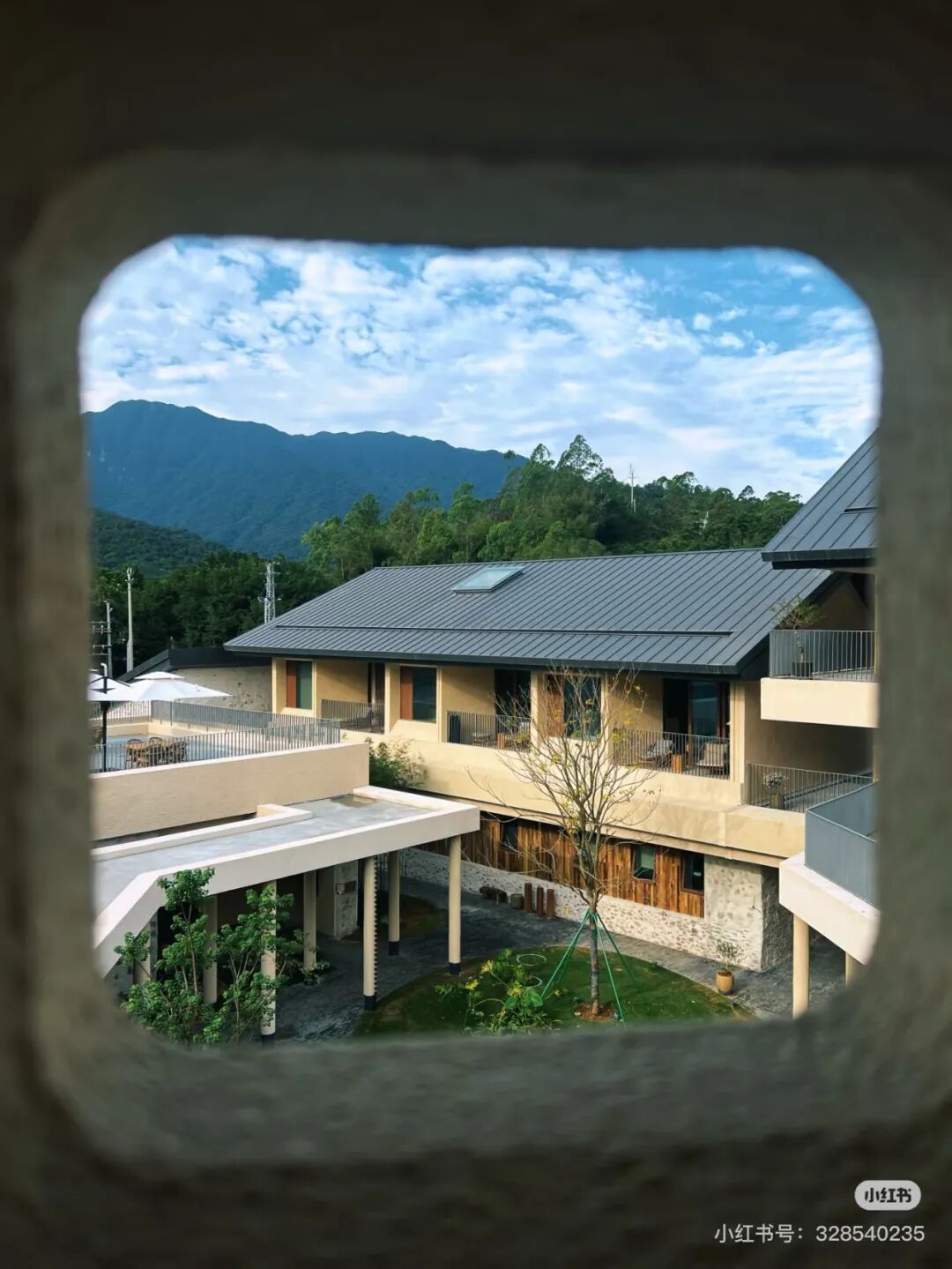 抬眼,庭院便将罗浮山的层峦叠翠收入画中。晨起薄雾绕峰,仿若水墨渲染;待到薄暮,夕阳为山峦镀上暖金,晚风送来阵阵草木清芬。一切侵略在此消弭,唯余“我见青山”的会心与“推窗见山”的泰然。