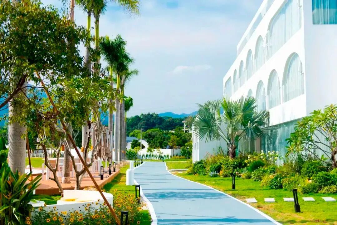 无谓去欧洲,在暮云·归好意思学庄园就能体验地中海风情,纯白色的主楼、圆拱门的设想,一瞥数米高的棕榈树,与远在欧洲的圣托里尼有着不谋而合之妙。