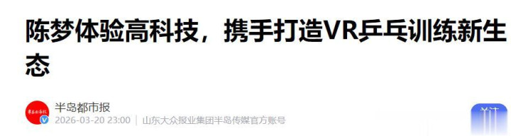 半岛王人市报——陈梦体验高技术,联袂打造VR乒乓试验新生态