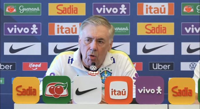 虎扑03月25日讯巴西国度队主教练安切洛蒂出席3月份的海外比赛日发布会。