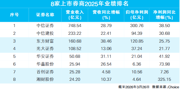 A股上市券商2025年功绩表示进行时,Choice数据泄漏:已公布功绩的8家券商所有这个词终了营业收入1377.07亿元,同比增长31.10%;终了归母净利润595.88亿元,同比增长33.78%。