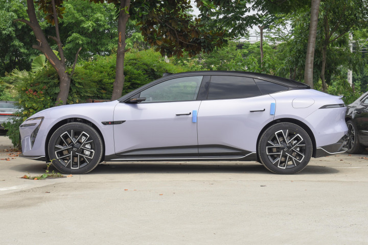车身侧面采选了悬浮式车顶想象,视觉成果很通达。它采选了无后舷窗的想象,这极少乍一看可能不太民俗,但骨子上是为了配合车身线条,营造出一种更高档的包裹感。从实用角度看,这也能在一定进度上保护后排乘客的心事。总共这个词侧面看下来,比例合营,莫得显然的短板,无论是年青东说念主我方开,也曾周末接孩子、带老东说念主外出,齐不会显得突兀。