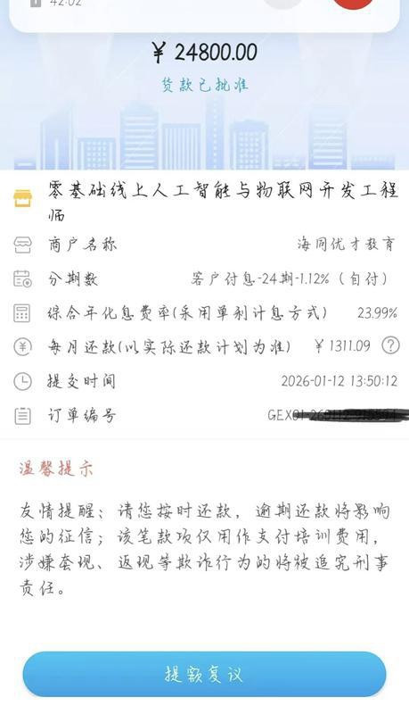 小臣通过“即分期”平台,办理了24800元的培训贷款。