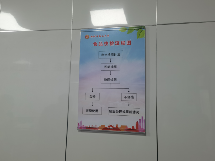 3月24日,衡水二中食堂,快检室中张贴的检测历程。新京报记者寇家祥摄
