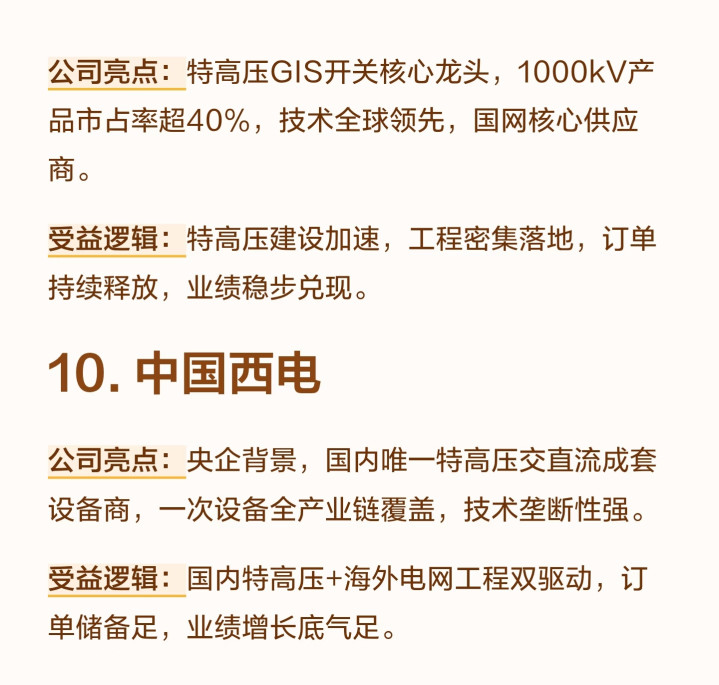 这10家公司,不是璷黫挑的,全是电力领域技能把持+资源壁垒+战略受益的中枢标的,分三大类,每一类齐有明确的投资逻辑: