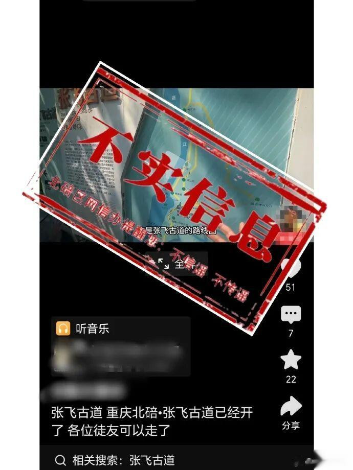 近日,有网民在某互联网平台发布视频,称“重庆北碚张飞古谈照旧开了,列位途友不错走了”,激发温雅。经核实,该音信伪善。